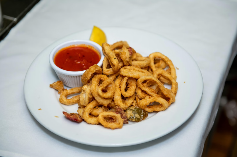 Flash-fried squid rings with chipotle aioli and fresh lemon