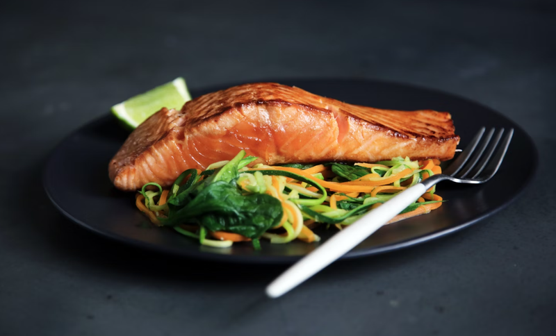 Atlantic salmon with lemon butter, wild rice pilaf, and asparagus