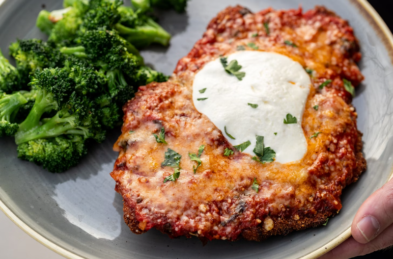Breaded chicken breast, marinara, mozzarella, served over spaghetti