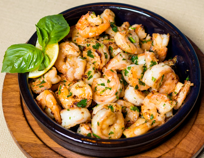 Jumbo shrimp sautéed in white wine, garlic, butter over linguini