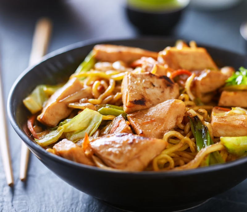 Seasonal vegetables, tofu, teriyaki sauce over jasmine rice